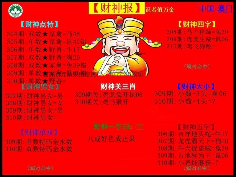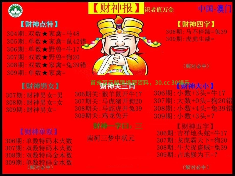 307期:九肖【兔虎羊马狗蛇龙猴鼠】开:狗20准
